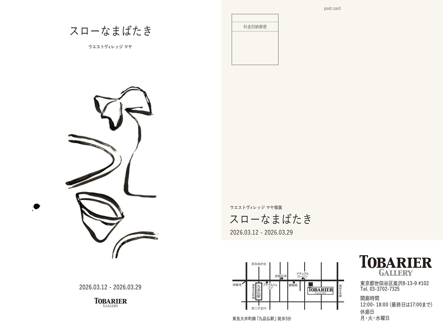 2026年 3月12日(木) 〜 3月29日(日) 12:00〜18:00 (月・火・水躍休廊 最終日は17:00まで) →DM
